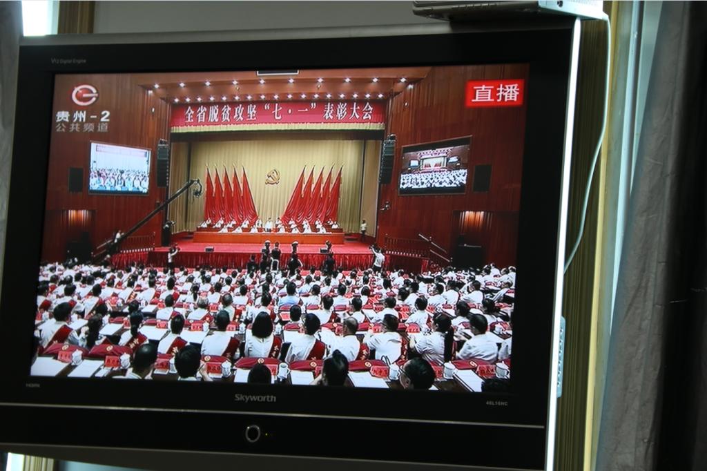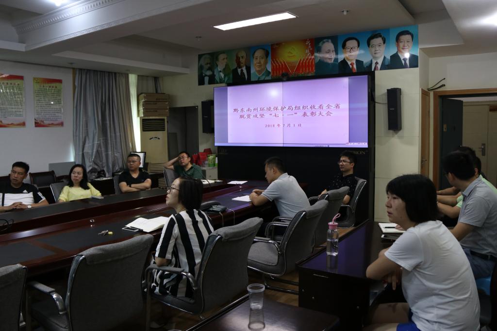 7月1日上午,州环保局组织党员在局会议室集中收看全省脱贫攻坚“七·一”表彰大会。