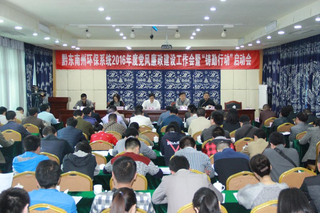 4月19日,州环保局组织召开全州环保系统2016年度党风廉政建设工作会暨“铸勤行动”启动会,州环保局纪检组长周文平同志会上作了2015年党风廉政建设反腐败工作报告,通报了近期环保系统纪检监察巡查情况,对2016年党风廉政建设工作进行安排部署,州环保局党组书记、局长刘光同志会上就深入推进全州环保系统党风廉政和反腐败工作开展,不断提升环境保护工作绩效、效率作了重要讲话,会议由州环保局党组成员、副局长潘瑞玲同志主持。